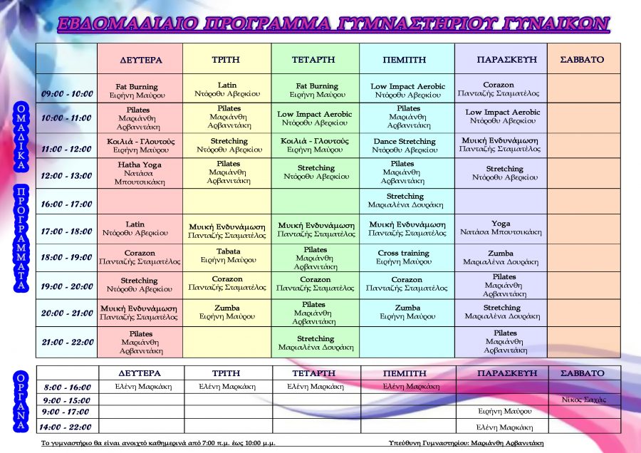 Την Τρίτη 15 Οκτωβρίου ξεκινάει κανονικά την λειτουργία του το Γυμναστήριο Γυναικών, στο ΠΑΛΑΙ.
